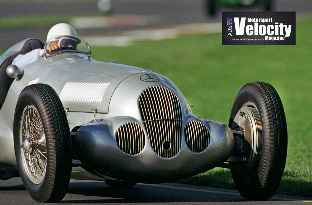 Sir Stirling Moss had returned to the Albert Track circuit, the scene of his 1956 victory at the Australian Grand Prix, to drive the Mercedes W125 during a historic demonstration run. I took some images of Moss in the car during the early moments of the weekend and later came across him in the pit lane some time later. For reasons that now escape me, Stirling chose to chat with me and I happened to mention that I had taken some images of him in the Mercedes.