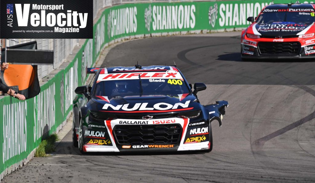 As spare parts are in somewhat of a short supply, it was comforting to see most of the field finish the race with minor scratches and marks that will buff out overnight. Mark Winterbottom’s rear suffered a bit of a knock which deranged the rear of his otherwise pristine Dewalt Racing Camaro, while Tim Slade had the left front guard peel back, which brought out the meatball sign for the Nulon Racing Camaro.