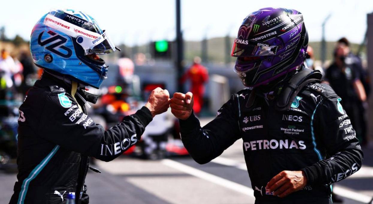 Lewis Hamilton has won the Portuguese Grand Prix with Valtteri Bottas 3rd. Max Verstappen managed to split the Mercedes pair…